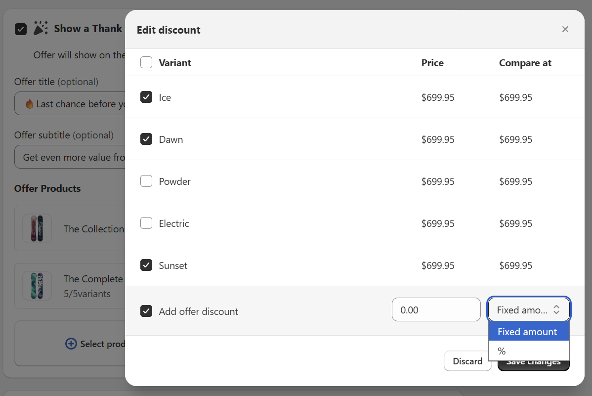 Now you can easily add discounts to specific product variants in your Manual Upsells.